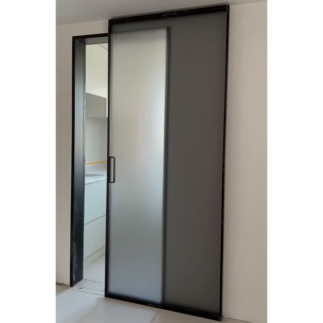 Single-Sliding Aluminum Framed Glass Ghost Door for Interior Living Room Kitchen Bathroom or Entry Hidden-Track Design
