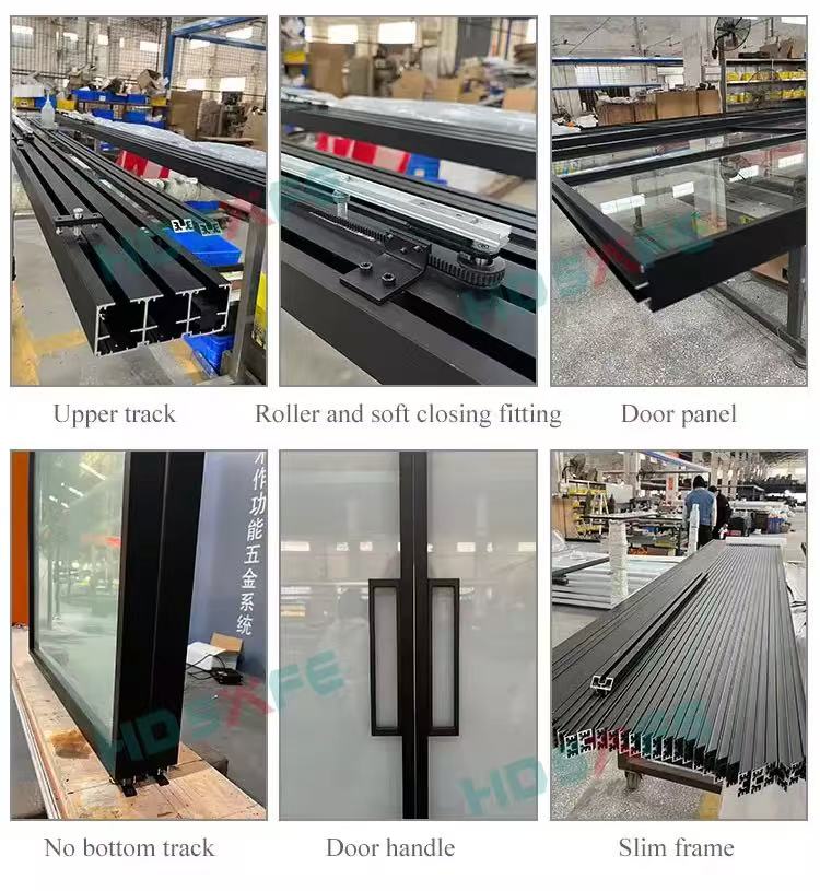 Interior Invisible Sliding Door Narrow Frame Trackless Aluminum Glass Hidden Ghost Doors