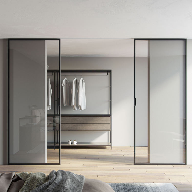 HDSAFE Modern Interior Glass Sliding French Door Matte Black Slim frame Aluminum Sliding Door