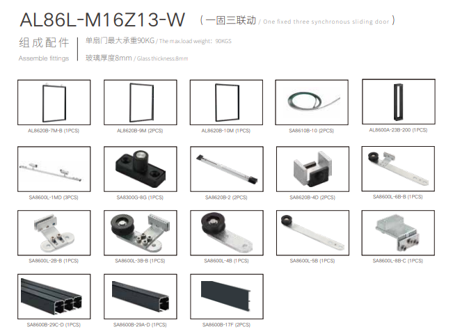 Modern Kitchen and Bedroom Sliding Door Simple Balcony Partition Aluminum Made in China