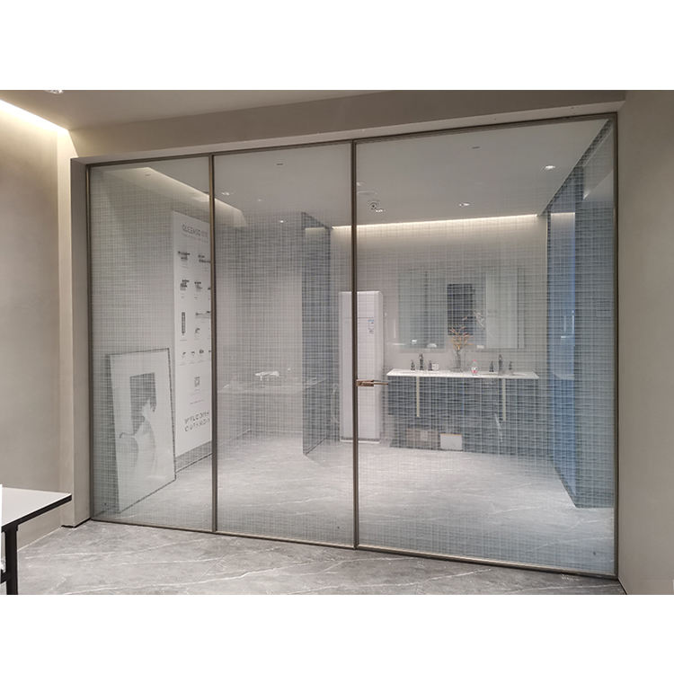 Complete Office System Security Door 8 mm Tempered Glass Aluminum Frame Glass Glass Flush Door