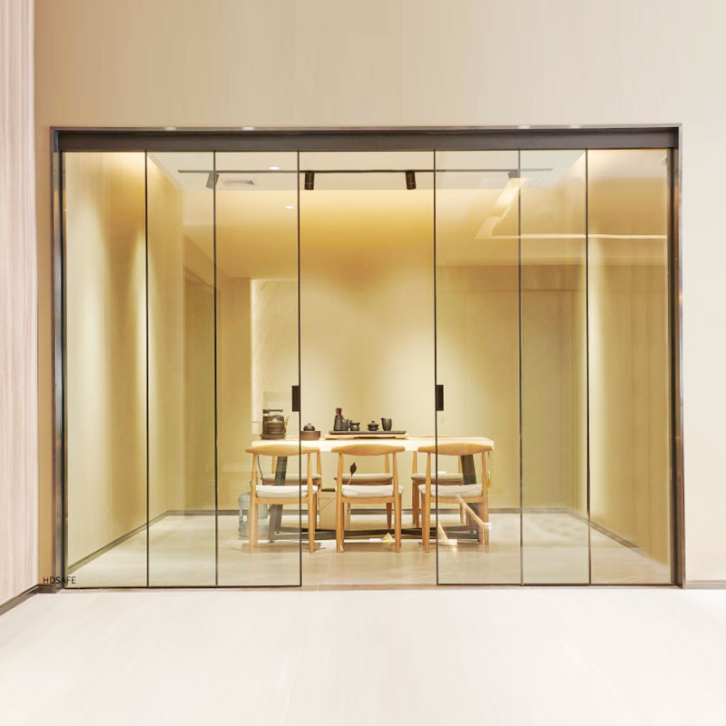 Telescopic glass doors system is also very suitable to be installed in the cloakroom. While expanding the visual space, it can also be conducive to ventilation, without the feeling of being cramped, and it is tall and blowing.