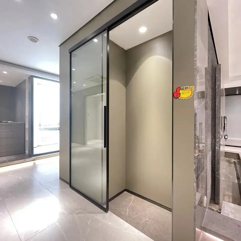 Slim Aluminum Sliding Door Wall Mounted Matt Black White Frame Sliding Glass Door
